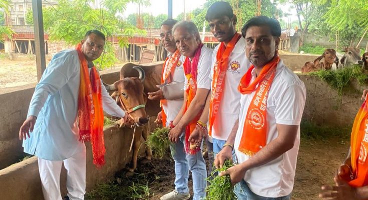 गायों को हरा चारा व गुड़ खिलाकर गो सेवा का संकल्प लिया गया और समिति ने पूर्व सरपंच सुनील प्रजापत सहित अन्य गणमान्यों का माल्यार्पण कर सम्मान किया।