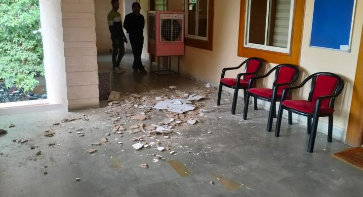 नगर निगम हेरिटेज में बड़ा हादसा — आयुक्त के दफ़्तर के बाहर छत का प्लास्टर गिरा